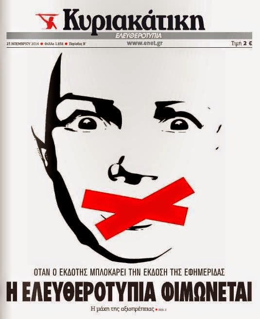 Διαβάστε στον σύνδεσμοόλη την έκδοση της "Κυριακάτικης Ελευθεροτυπίας", που ο εκδότης της δεν επέτρεψε να κυκλοφορήσει στα περίπτερα